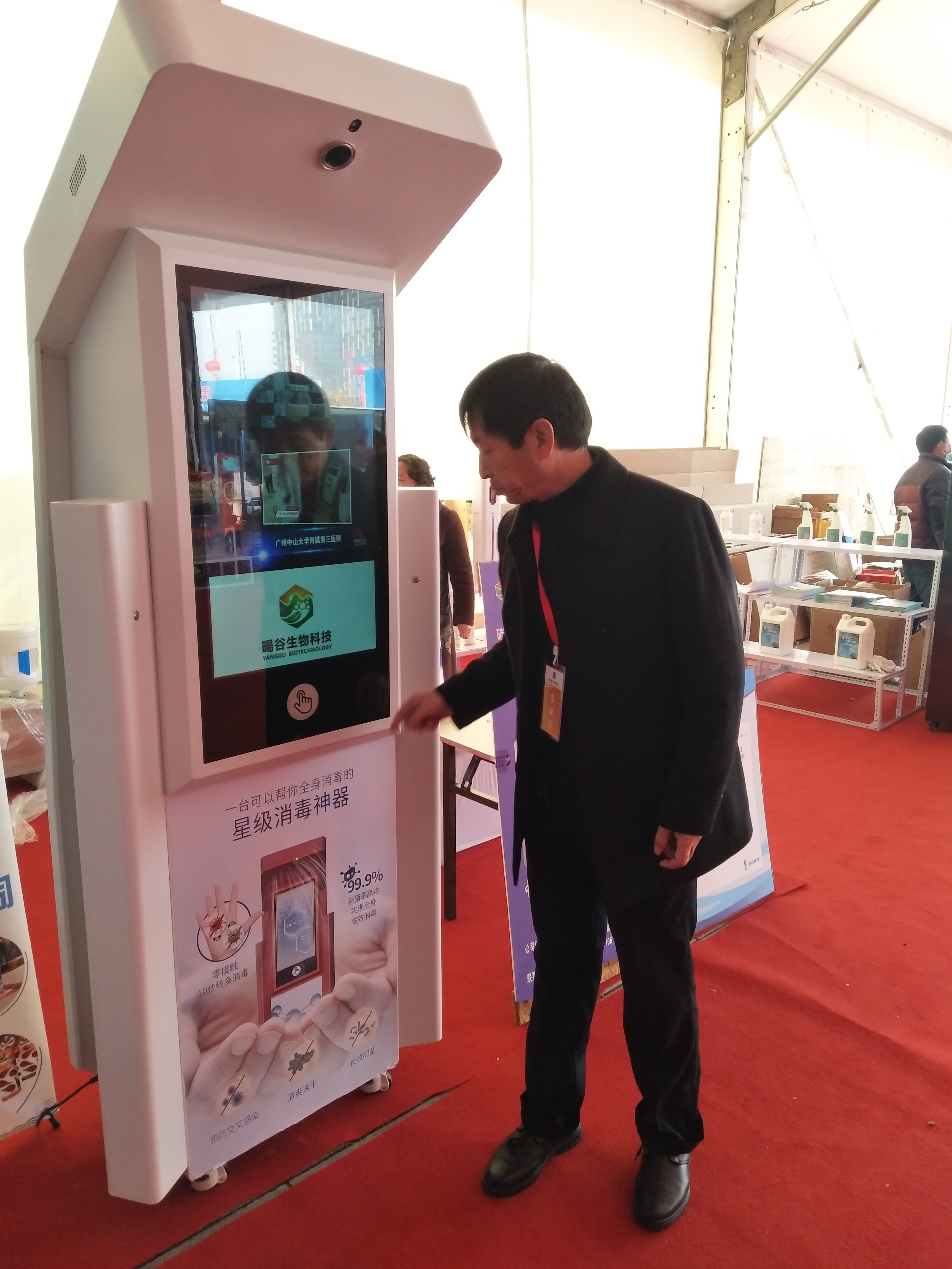 手掌往感控區(qū)上輕輕一罩,液晶屏四角就噴出霧化消毒液,大概持續(xù)10秒,足夠人轉(zhuǎn)一圈做周身消毒——在周商產(chǎn)品展示展覽大廳的西南角,北京陽(yáng)谷生物科技有限公司市場(chǎng)部總監(jiān) 、項(xiàng)城人張清峰在介紹“人體感應(yīng)消毒機(jī)”,引得市民紛紛圍觀體驗(yàn)。由于消毒液沒有異味,部分市民質(zhì)疑是清水,對(duì)此張清峰說(shuō):“我們用的是‘竹芳牌’碳酸型微酸性次氯酸消毒液,我們的消毒機(jī)主要是面向校園推廣的,給孩子用的東西除了要有效,還得保證安全溫和,碳酸型的消毒液就沒有這么大的刺激性?!睋?jù)張清峰介紹,“人體感應(yīng)消毒機(jī)”是今年五月下旬生產(chǎn)的新品,目前處在推廣階段,“當(dāng)?shù)弥芸谝k第一屆周商大會(huì)的消息,我第一時(shí)間想到要把消毒機(jī)展示給家鄉(xiāng)父老。我是個(gè)在北京打拼十多年的項(xiàng)城人,目前河南分公司由我負(fù)責(zé),項(xiàng)城市政府給了我很多支持?!?/p>