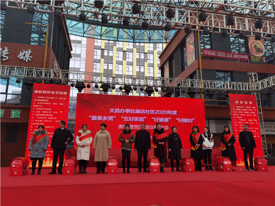 為大力弘揚(yáng)中華民族傳統(tǒng)美德,深入挖掘康店社區(qū)尊老敬孝、勤儉持家的先進(jìn)典型,積極引導(dǎo)廣大居民群眾移風(fēng)易俗、孝老愛(ài)親,促進(jìn)家庭和睦、社會(huì)和諧,11月27日,城鄉(xiāng)一體化示范區(qū)文昌辦事處康店社區(qū)舉行“最美鄉(xiāng)賢”“好婆婆”“好媳婦”“五好家庭”表彰大會(huì)暨文藝演出活動(dòng)。據(jù)悉,經(jīng)社區(qū)村民推薦,康店社區(qū)評(píng)選出的14位“最美鄉(xiāng)賢”、7戶(hù)“五好家庭”、5位“好婆婆”、7位“好媳婦”現(xiàn)場(chǎng)接收表彰。