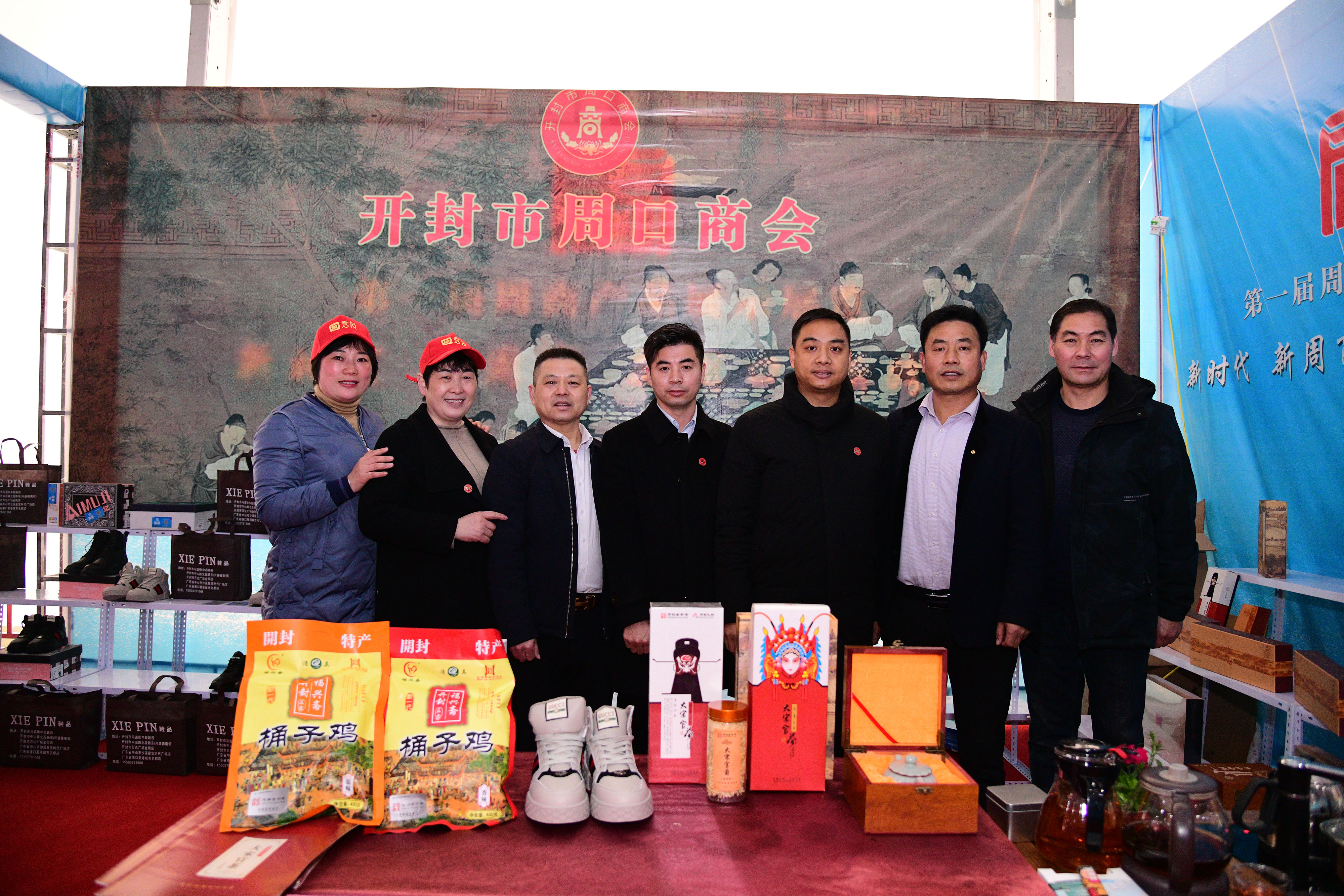 11月29日,在首屆周商大會上,在第126展位上,開封市周口商會派出六位代表齊聚這里,帶著深耕開封城多少年的成果,意氣風發(fā)地向家鄉(xiāng)展示他們的風采。他們分別是“大宋官茶”老總牛華麗,“大宋官瓷”老總董俊 ,福興齋桶子雞老總馬勇 ,全屋家具定制工廠“葉林森品牌”的兩位老總之一的岳偉,“鞋品”鞋老總侯建峰,電商服務(wù)平臺“秀商時代”老總王俊華。他們代表開封市周口商會的194家企業(yè)代表,和家鄉(xiāng)人見面,平時他們身在開封,深耕商界,乘風破浪,促進了當?shù)亟?jīng)濟繁榮,也為周口帶來財富。
