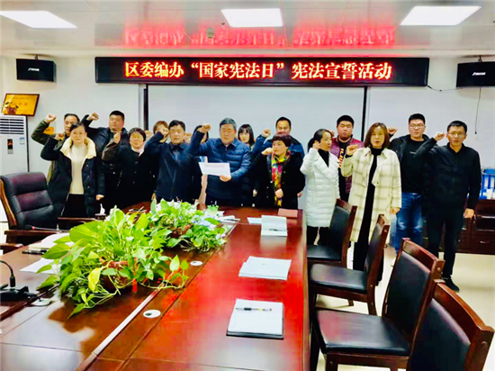 “我宣誓:忠于中華人民共和國憲法,維護(hù)憲法權(quán)威,履行法定職責(zé),忠于祖國、忠于人民,恪盡職守、廉潔奉公,接受人民監(jiān)督,為建設(shè)富強(qiáng)、民主、文明、和諧、美麗的社會(huì)主義現(xiàn)代化強(qiáng)國努力奮斗!”12月4日上午,淮陽區(qū)委編辦主任張命令,帶領(lǐng)全體干部職工一起宣誓,洪亮而鏗鏘的誓言響徹宣誓現(xiàn)場(chǎng)。