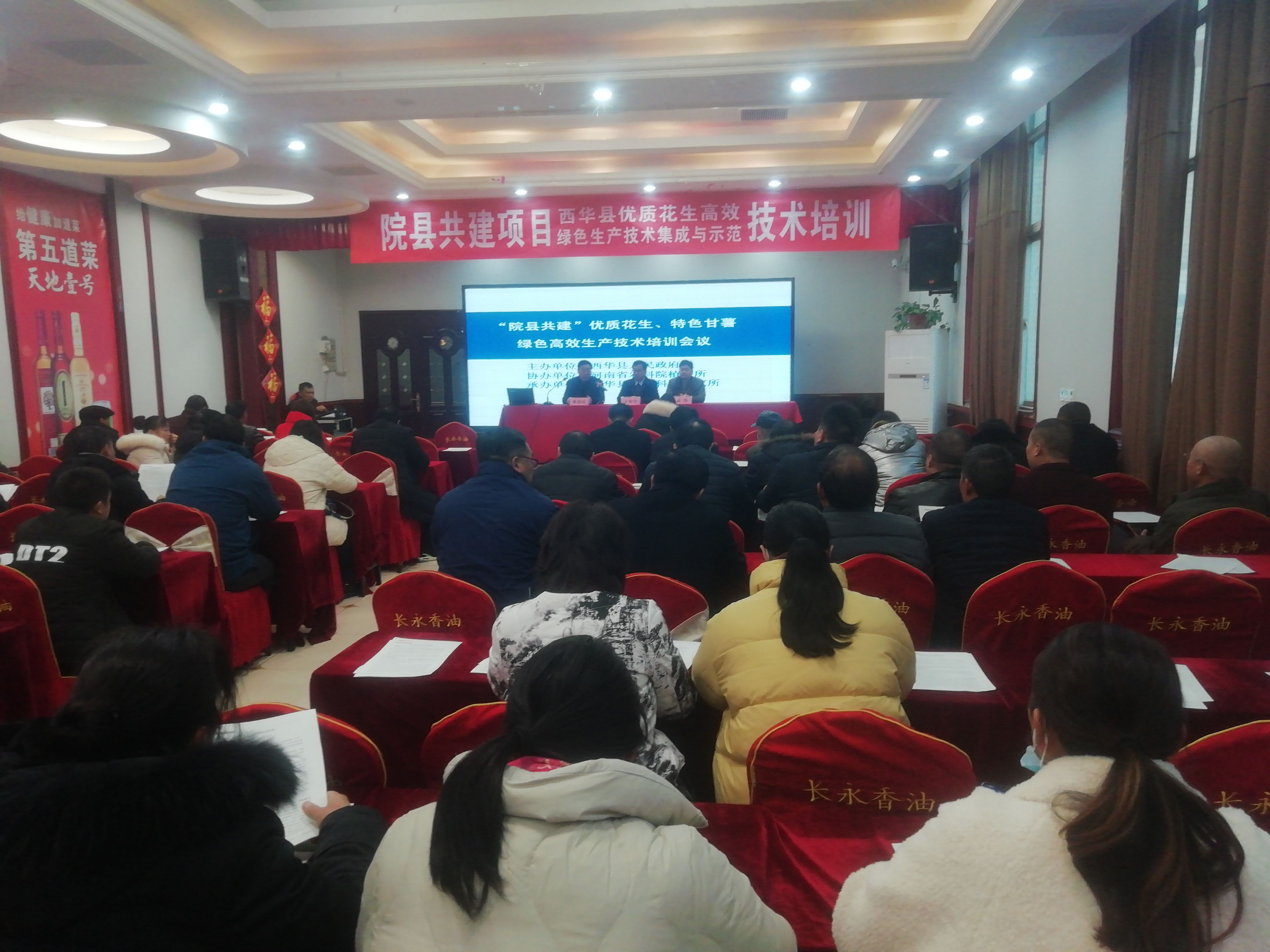 12月7日上午,院縣共建項目西華縣優(yōu)質(zhì)花生高效綠色集成與示范技術(shù)培訓(xùn)會及現(xiàn)代農(nóng)業(yè)科技綜合示范縣項目西華縣甘薯安全貯藏和葉用甘薯生產(chǎn)技術(shù)培訓(xùn)在西華縣溫哥華一樓會議室舉辦。來自全縣各鄉(xiāng)(鎮(zhèn))、辦事處分管農(nóng)業(yè)副職,農(nóng)業(yè)經(jīng)營主體代表及種植大戶100多人參加會議。