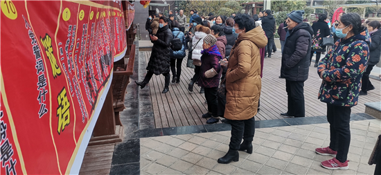 一大早,來自川匯區(qū)文聯(lián)、區(qū)民協(xié)的工作人員,將金色東方社區(qū)的休閑廣場(chǎng)裝扮得格外喜慶,兩條帶有傳統(tǒng)紋飾圖案的噴繪印著謎語和黨的知識(shí),掛在休閑長(zhǎng)廊上,吸引著出來曬太陽或散步的居民。區(qū)文聯(lián)黨組書記史濤,區(qū)文聯(lián)黨組成員、副主席游富華,區(qū)人和辦事處副書記武陽,市民協(xié)副主席羅營(yíng)東、區(qū)民協(xié)主席杜超,區(qū)民協(xié)秘書長(zhǎng)任建明等走進(jìn)社區(qū),參加這場(chǎng)活動(dòng)?!爸袊?guó)共產(chǎn)黨是什么時(shí)候成立的?”“1921年7月23日”“答對(duì)了,獎(jiǎng)洗衣液一壺!”游富華以問答的形式和居民們互動(dòng),向居民們普及黨的知識(shí),居民們紛紛參與,氣氛活躍。