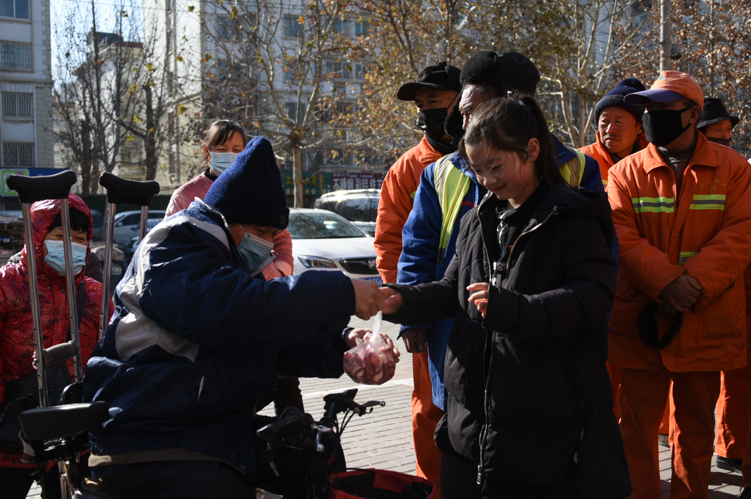 在現(xiàn)場(chǎng)分派羊肉的店老板陳峰稱,此次現(xiàn)場(chǎng)將為到場(chǎng)的環(huán)衛(wèi)工人、殘疾人朋友派發(fā)30多份,一些行動(dòng)不便的困難家庭,他們隨后將登門相送?!耙粋€(gè)人做一件好事不難,難的就是十幾年的堅(jiān)持?!币幻麣埣踩伺笥焉斐龃竽粗刚f到。