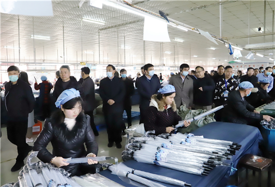 近年來,鄲城一直致力探索培育新的縣域經(jīng)濟增長點。鄲城縣委、縣政府組成黨政考察招商團,數(shù)次赴珠三角、長三角等經(jīng)濟區(qū)走訪和調(diào)研,推介鄲城、招才引智、招商引資、謀求共贏。千淘萬漉出真金,通過反復(fù)論證,充分發(fā)揮鄲城有10萬在外務(wù)工人員從事制傘行業(yè)這一優(yōu)勢,把握東南沿海傘業(yè)向內(nèi)地轉(zhuǎn)移的良機,培育縣域經(jīng)濟傘業(yè)新動能的思路逐漸清晰起來。