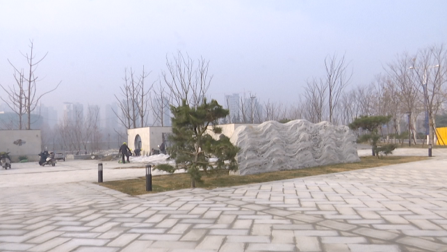1月4日上午,記者在現(xiàn)場看到,映入眼簾的是一塊巨大的景觀石,造型如山峰,氣勢巍峨,左右兩側(cè)擺放黑松,使得整個(gè)游園風(fēng)格簡潔,自然爽朗,歷史元素厚重,在功能布局上,還配建了健身小廣場、休憩廊架等,提升了游園的綜合服務(wù)功能,成為周邊市民游玩鍛煉的好去處。