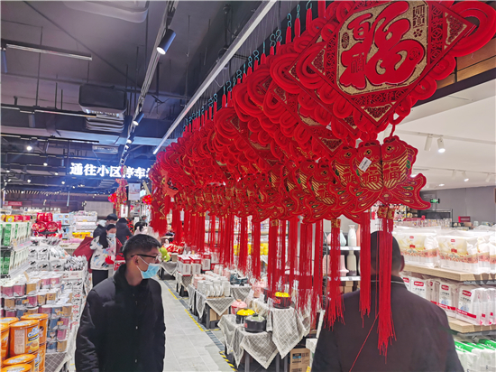 春節(jié)日益臨近,我市市場上節(jié)日氣氛也漸漸濃厚。1月10日,在市區(qū)一些超市、市場看到掛滿紅紅的中國結(jié)和燈籠,貨源準(zhǔn)備充足,充分保障春節(jié)期間供應(yīng)。