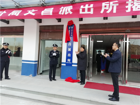 當(dāng)日上午10時(shí)許,羅海龍、丁有亮共同為文昌派出所揭牌,文昌派出所全體干警、輔警面向警旗莊重宣誓。隨后,參加儀式的全體人員實(shí)地參觀了文昌派出所軟硬件設(shè)施等。丁有亮帶領(lǐng)文昌辦事處書記、主任現(xiàn)場了解了民警的辦公和值班情況,叮囑文昌辦事處要大力支持派出所的工作,切實(shí)為群眾解決實(shí)際問題。