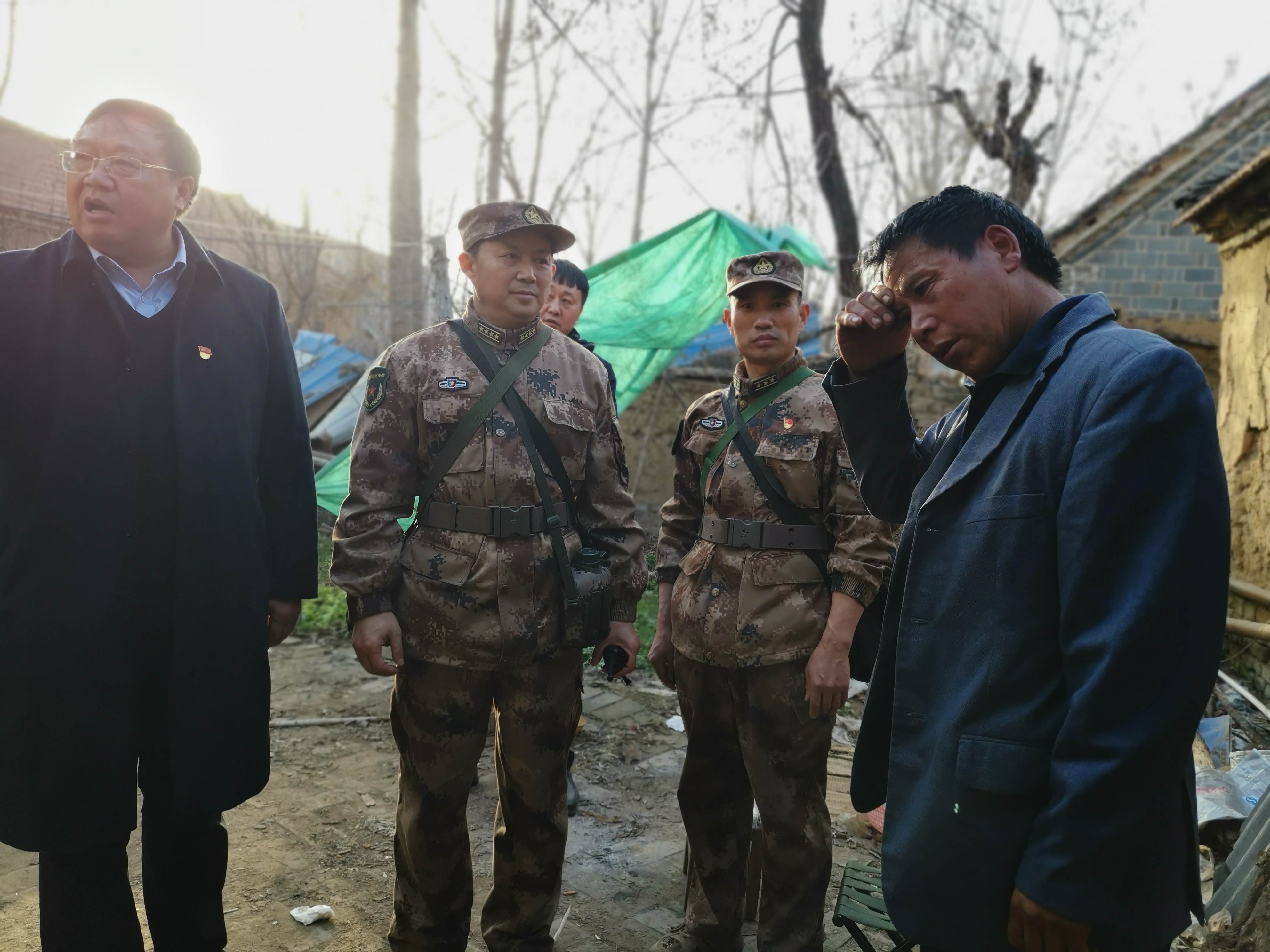 周口軍分區(qū)還將政治工作貫穿于野營拉練全過程,當(dāng)行至周口港區(qū)苑寨行政村時,薛振喜、周口軍分區(qū)政治工作處主任李揚以及川匯區(qū)人武部部長陳繼芳、政委高新傳等來到貧困戶苑立中家中慰問,為他們送去米面糧油等慰問品??粗喡姆课?,得知苑立中獨自一個人拉扯3個孩子的艱辛生活后,薛振喜囑咐當(dāng)?shù)卣臀溲b部門要想辦法幫扶這戶貧困家庭。 苑立中激動地流下眼淚,握著薛振喜的手連聲感謝。