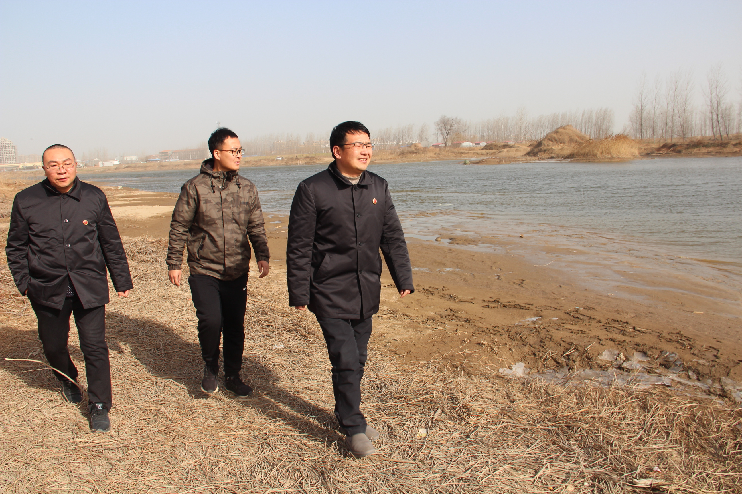 扶溝縣檢察院公益訴訟部門的檢察官堅持經(jīng)常性深入轄區(qū)內(nèi)的河道、湖泊開展巡河檢查,對水質(zhì)、水流進行監(jiān)測,對水面是否有垃圾漂浮物、是否存在垃圾傾倒和污水直排、沿河(湖)養(yǎng)殖情況和環(huán)境整治情況進行巡查。同時,結(jié)合檢察機關(guān)公益訴訟職能,重點對河(湖)沿岸是否存在非法采砂、堆砂,河灘地是否遭到破壞,河(湖)堤是否受到毀損等危害國家和社會公共利益的行為進行排查,對發(fā)現(xiàn)的問題及時督促整改,用“檢察藍”守護“河湖美”,努力實現(xiàn)河清水秀景美的效果。圖為1月18日,該院檢察官對扶溝縣賈魯河城區(qū)段河道進行實地巡查。