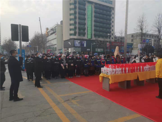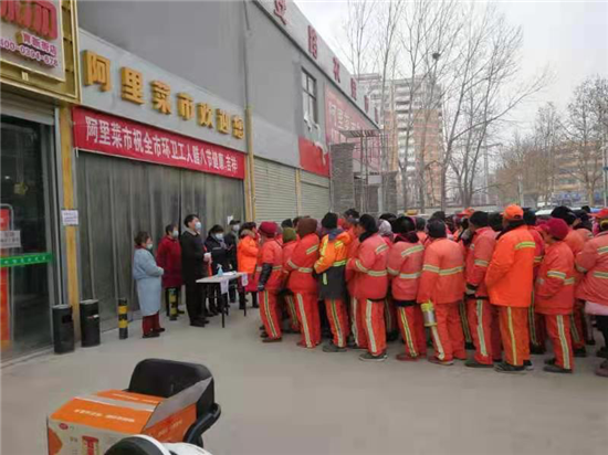 1月20日是傳統(tǒng)節(jié)日臘八節(jié),一大早,中心城區(qū)萬順達(dá)廣場(chǎng)就為川盛環(huán)境有限公司的環(huán)衛(wèi)工們準(zhǔn)備了臘八粥和毛巾、口罩等防疫物資,阿里市場(chǎng)為每名環(huán)衛(wèi)發(fā)放10元代金券,持劵可在市場(chǎng)內(nèi)消費(fèi)購物,愛心企業(yè)為辛勤的城市美容師在寒冷的冬季送上了一份暖心的祝福。