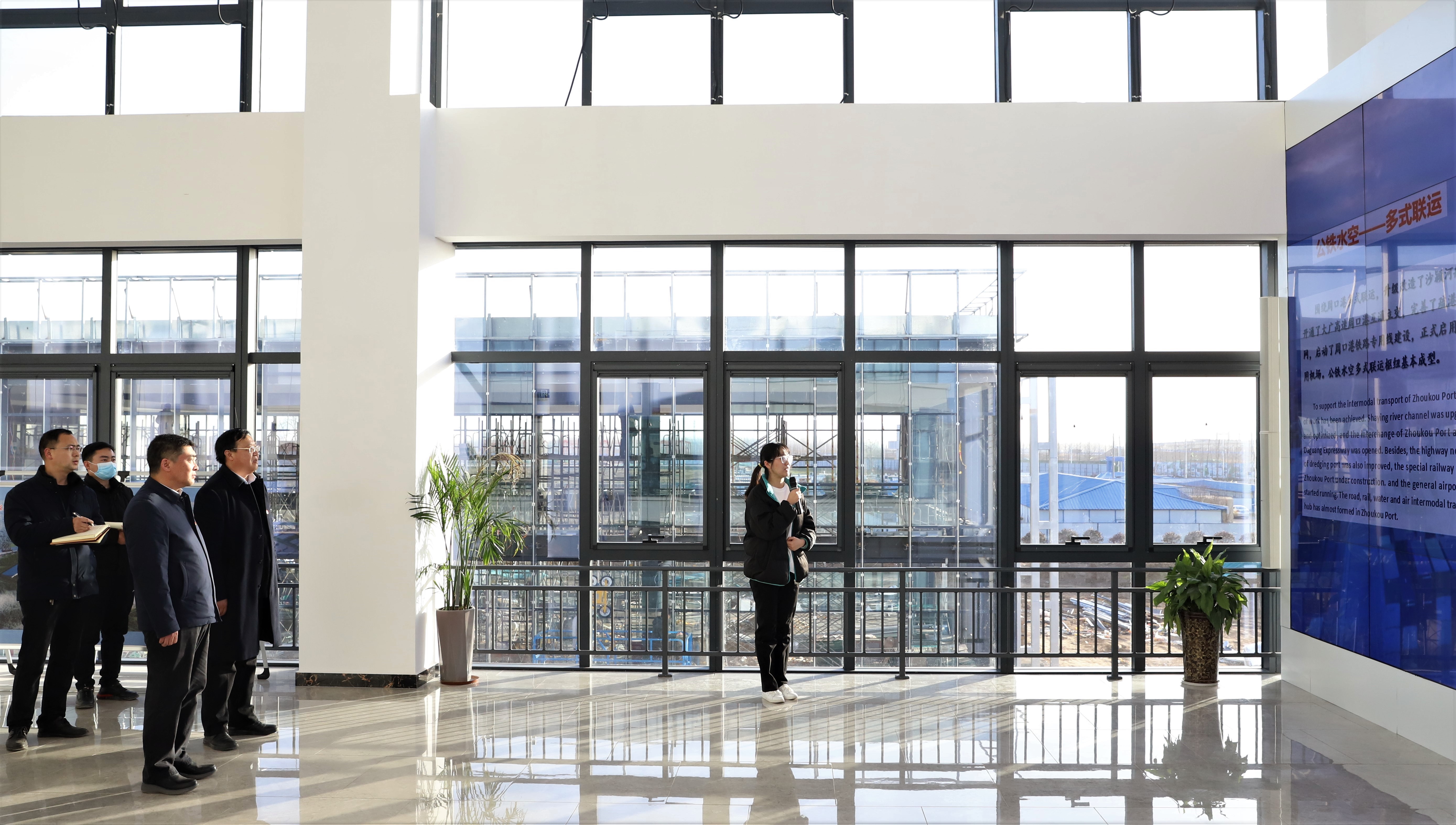 隨后,孫鵬前往周口中心港智慧港口指揮中心,聽取了碼頭建設運營和航道通行情況的匯報,并登上樓頂,俯瞰碼頭周邊配套設施建設、規(guī)劃情況。孫鵬指出,要圍繞碼頭,做好基礎配套設施建設,通過完善的配套設施,吸引更多的項目在港區(qū)落地。