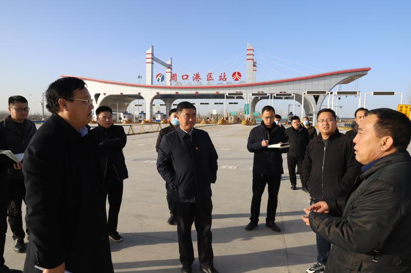 大廣高速港區(qū)互通立交項目距中心港碼頭約為1.2公里,目前已經(jīng)達到通車條件,通車后通過疏港道路實現(xiàn)碼頭與高速無縫對接。在該項目收費站,孫鵬詳細詢問項目負責人通車前需要做的工作,他指出,高速公路是多式聯(lián)運的重要組成部分,要抓緊時間解決目前存在問題,推進大廣高速港區(qū)互通立交項目早日通車。