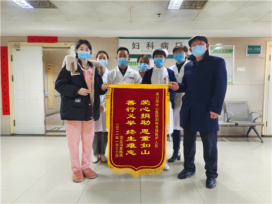 “劉醫(yī)生,謝謝您!”1月30日上午,在周口市中心醫(yī)院婦科病區(qū),做完胚胎橫紋肌肉瘤手術(shù)的小雨(化名)向醫(yī)護(hù)人員送上“愛心捐助 恩重如山 善行義舉 終身難忘”的錦旗。
