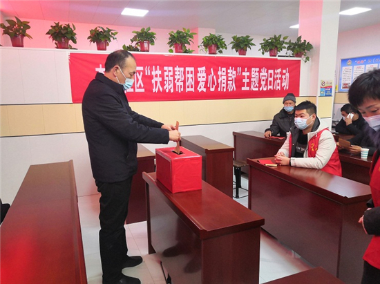 春節(jié)將至,歲寒情深。為確保困難群眾“過暖冬”“過好年”,1月29日上午,鄲城縣洺南辦事處李莊社區(qū)組織開展“扶弱幫困,愛心捐款”主題黨日活動(dòng)?!拔覀儠?huì)盡自己最大的力量幫助他們解決實(shí)際困難,祝愿他們度過一個(gè)溫暖的春節(jié)?!鄙鐓^(qū)黨支部書記、主任王超勤表示。