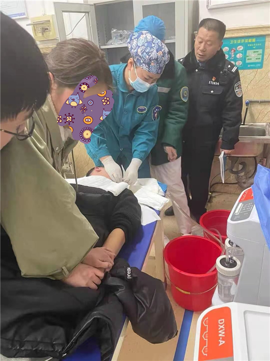 當(dāng)日21時(shí)許,在該賓館一房間,丁高嶺通過(guò)半掩的門(mén),發(fā)現(xiàn)了輕生男子,急忙沖過(guò)去,取下了吊在其脖子上的電話(huà)線(xiàn),立即通知120醫(yī)生進(jìn)行救治,并與醫(yī)生一起將其拉至項(xiàng)城市第一人民醫(yī)院進(jìn)一步治療。張某某極不配合、拒絕救治,丁高嶺苦口婆心勸說(shuō),并電話(huà)聯(lián)系到其父母,共同做其思想工作。經(jīng)過(guò)規(guī)勸,急救醫(yī)生才得以對(duì)其進(jìn)行洗胃等對(duì)癥處置,經(jīng)過(guò)近40分鐘的搶救,張某某終于脫離了生命危險(xiǎn)。