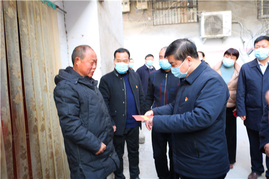 2月2日,在春節(jié)來(lái)臨之際,鹿邑縣委書(shū)記、縣長(zhǎng)李剛帶著掛念和關(guān)懷深入基層,看望慰問(wèn)困難勞模、困難職工、困難群眾、傷殘軍人代表,向他們致以節(jié)日的問(wèn)候和美好的祝福,并送上慰問(wèn)金和慰問(wèn)品??h人大常委會(huì)主任李國(guó)際,縣委常委、常務(wù)副縣長(zhǎng)陸志杰,縣委常委、縣委辦公室主任侯自峰,縣委常務(wù)、副縣長(zhǎng)王曉征,縣委常委、統(tǒng)戰(zhàn)部部長(zhǎng)程衛(wèi)東,副縣長(zhǎng)楊彩、翟杰、孫自豪,縣政府領(lǐng)導(dǎo)成員王玉超一同慰問(wèn)。