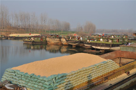 春節(jié)臨近,用電高峰到來,發(fā)電用煤量大增,商水港比平時更忙?!拔覀円惶炀湍馨岩粋€火車專列的煤裝運到船上,駛向下游城市!”在現(xiàn)場指揮的商水港負(fù)責(zé)人孫玉田指著沙河中停泊的10多個貨運船說。