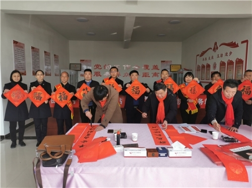 牛年春來早,農(nóng)家喜事多。2月7日,陽光明媚,春光普照。沈丘縣農(nóng)商銀行組織省市書協(xié)著名書法家來到沈丘縣白集鎮(zhèn)田營村, 為村民義寫春聯(lián)。