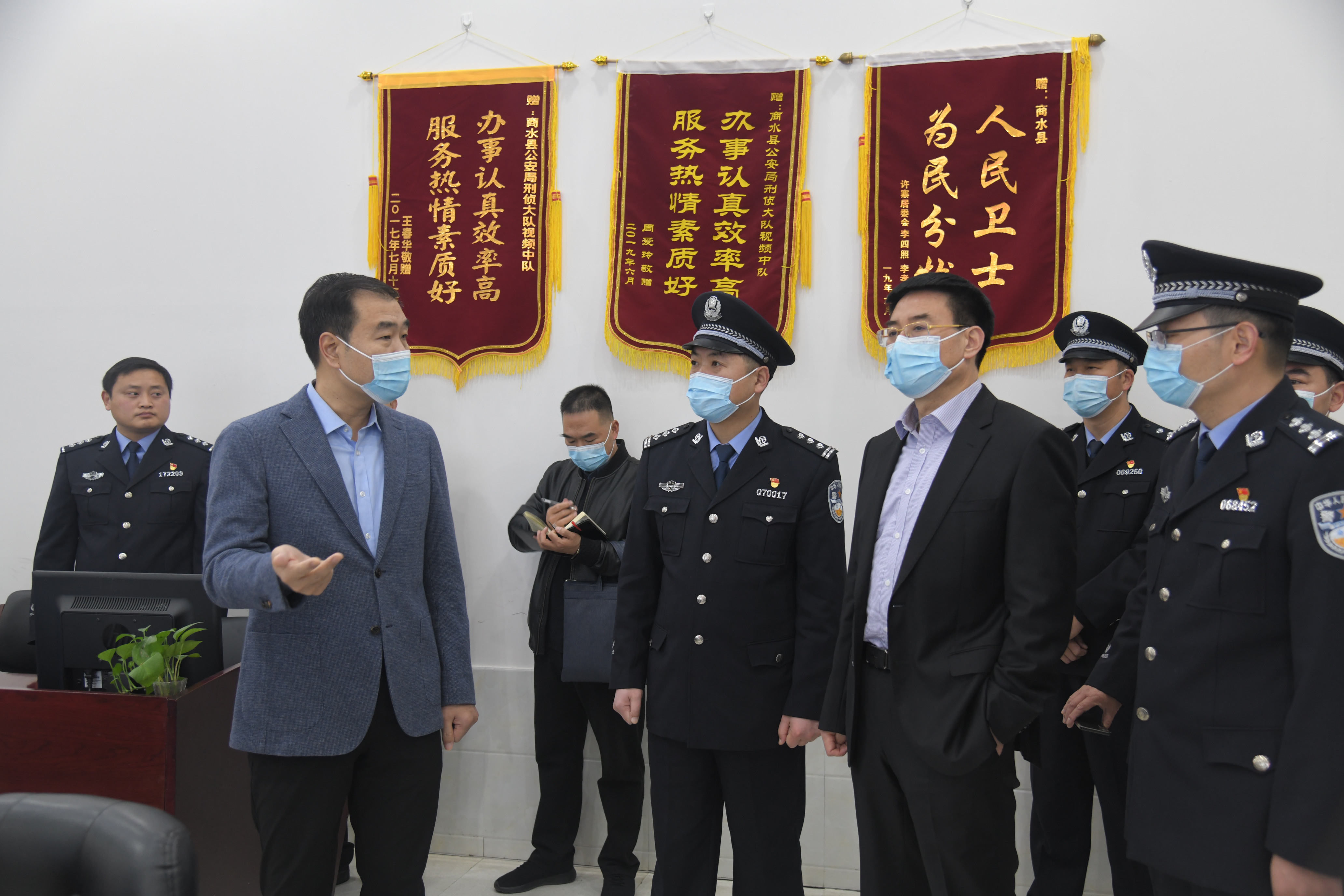 在縣公安局,孔陽、田林與備勤人員一一握手,親切交談??钻栆恍羞€到公安局110指揮中心和合成作戰(zhàn)中心,看望值班人員,對縣公安局新黨委班子成立以來取得的成績給予充分肯定。他指出,越是在萬家團(tuán)圓的時候,維護(hù)社會穩(wěn)定的任務(wù)就越重,希望堅守在一線的工作人員繼續(xù)發(fā)揚良好的作風(fēng),堅守崗位,確保全縣人民過一個平安祥和安全的春節(jié)。