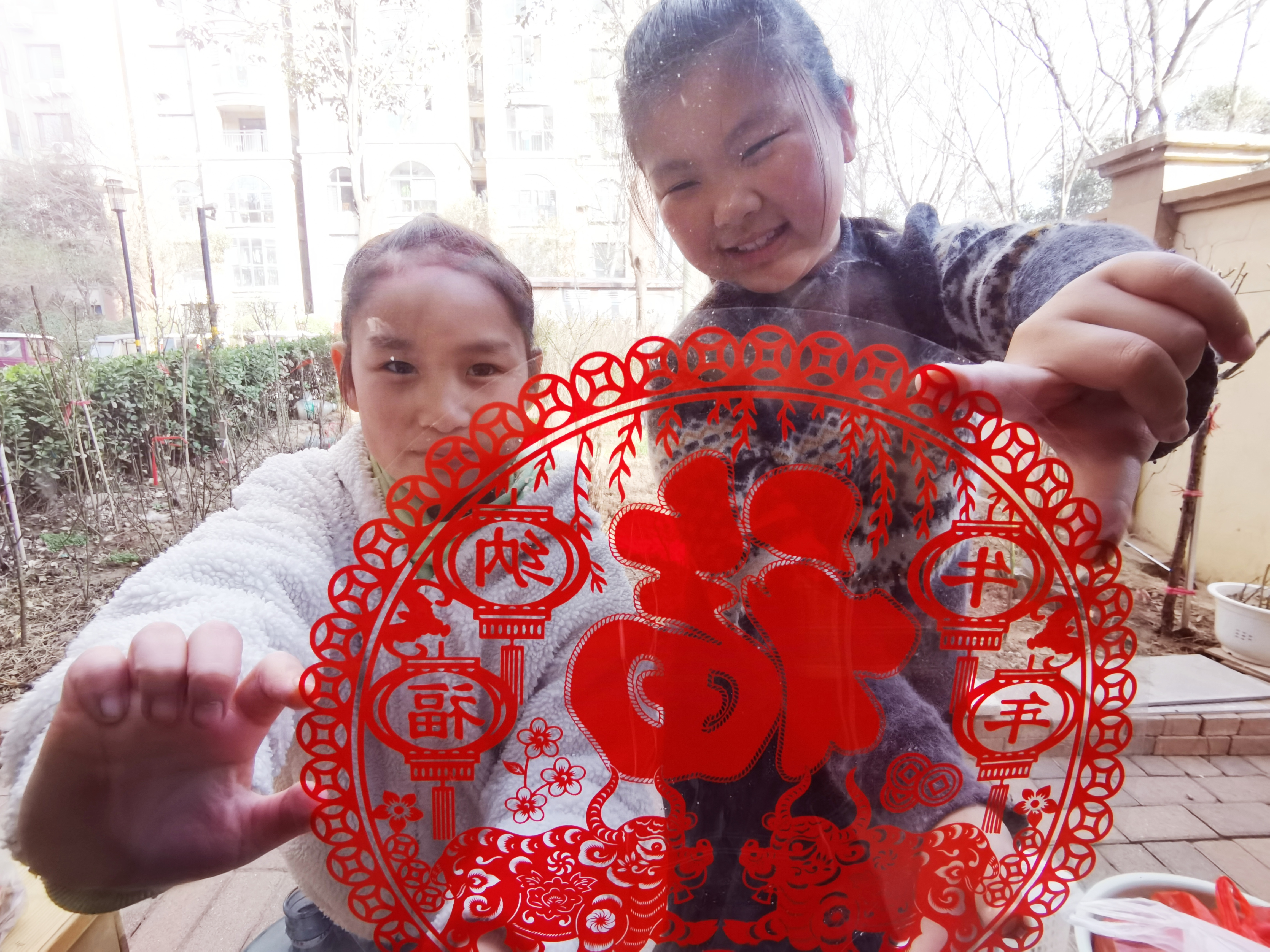 2月11日,小朋友在窗戶上貼窗花。今天是除夕,家家戶戶開始貼窗花、門對,掛燈籠,把家里裝扮得喜氣洋洋,準備歡歡喜喜過大年。③5