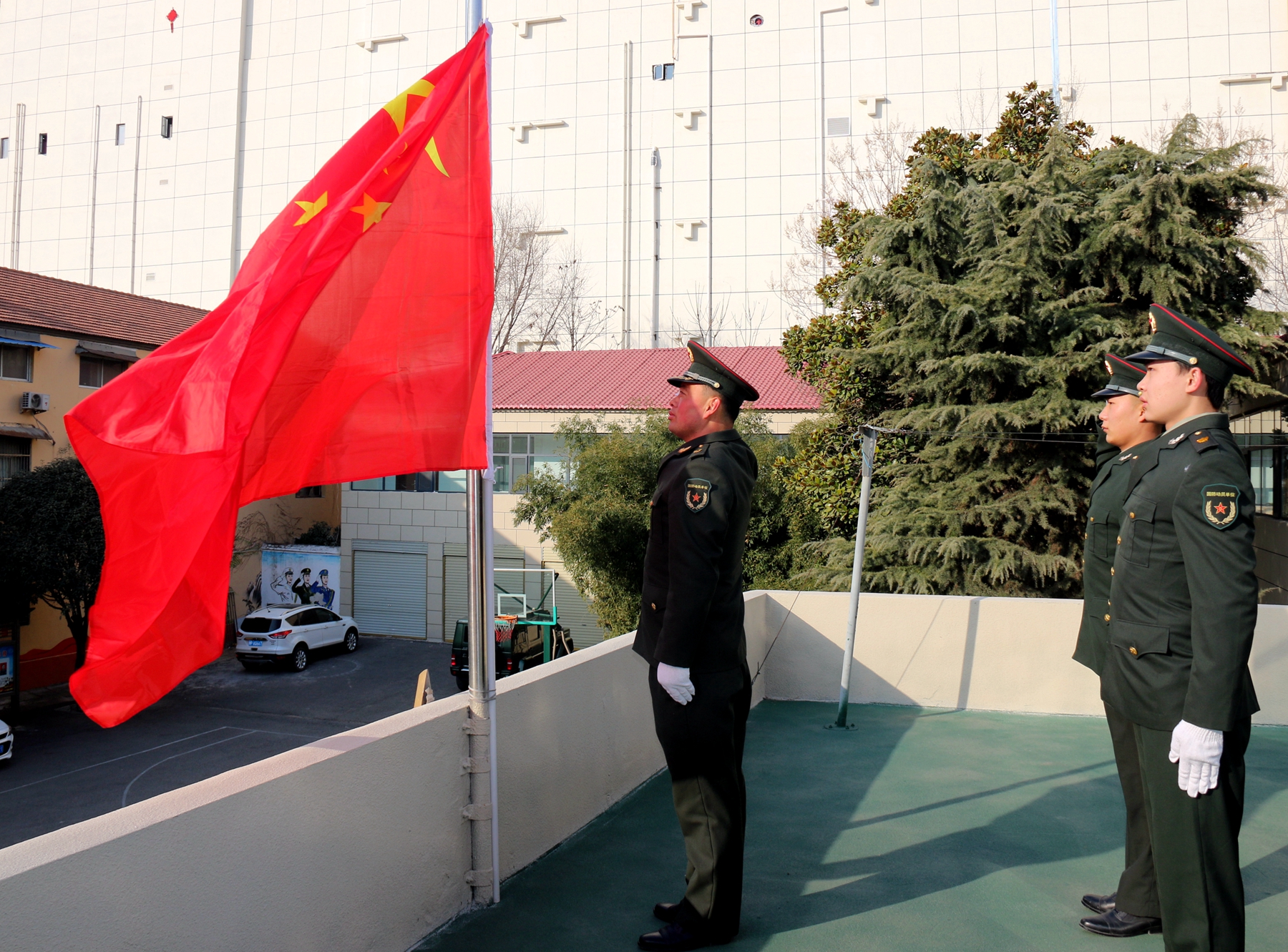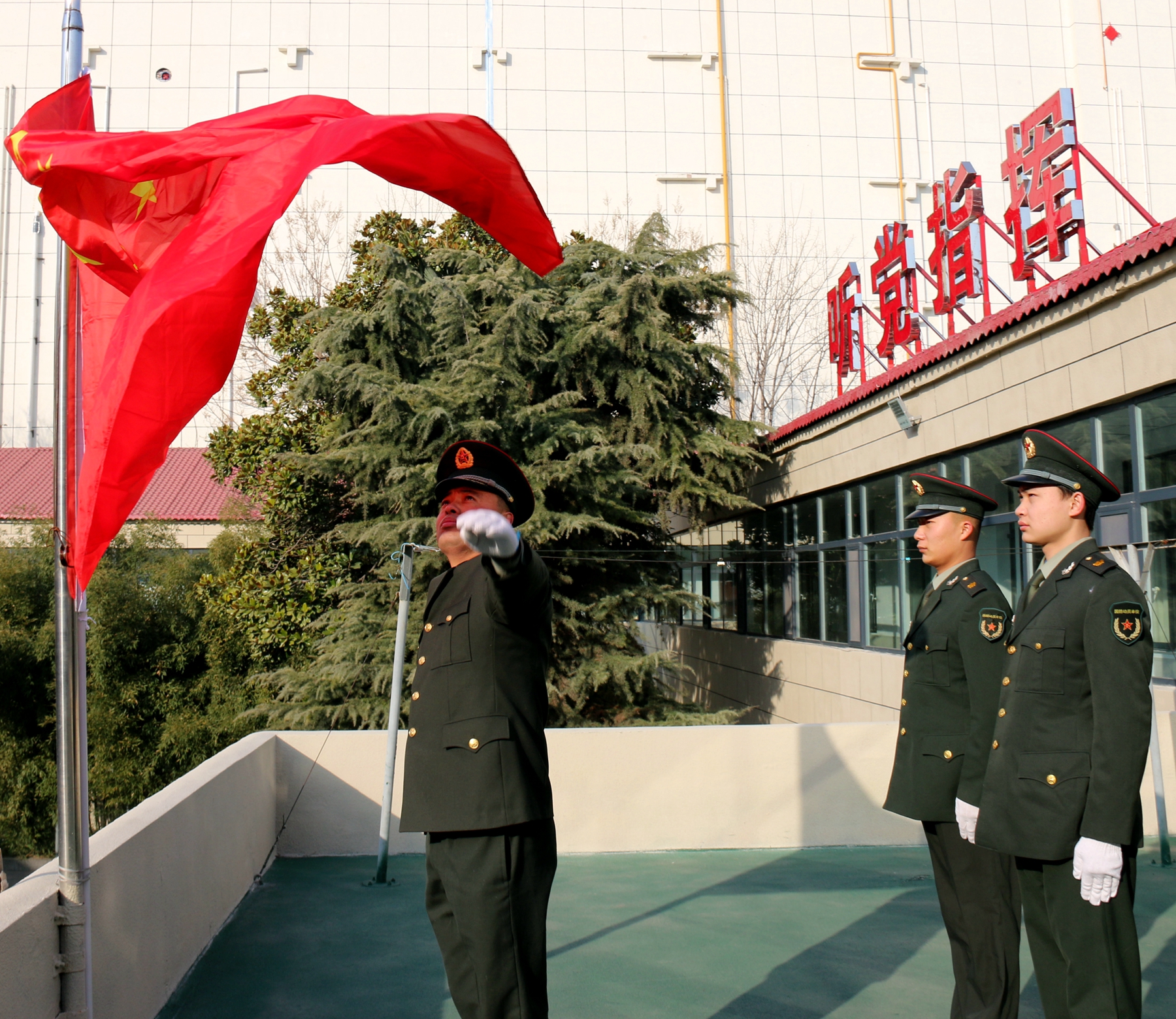 “起來,不愿做奴隸的人們……”,伴隨著激昂雄壯的《義勇軍進(jìn)行曲》,鮮艷的五星紅旗冉冉升起。2月12日8 時(shí),河南省鹿邑縣人武部干部職工和文職人員士氣高昂、精神抖擻、昂首挺胸、軍容嚴(yán)整,在機(jī)關(guān)樓前整齊列隊(duì),舉行升國旗儀式。他們齊聲高唱國歌,莊嚴(yán)地向國旗行舉手禮,向偉大祖國、人民軍隊(duì)致以節(jié)日祝福和崇高敬意。