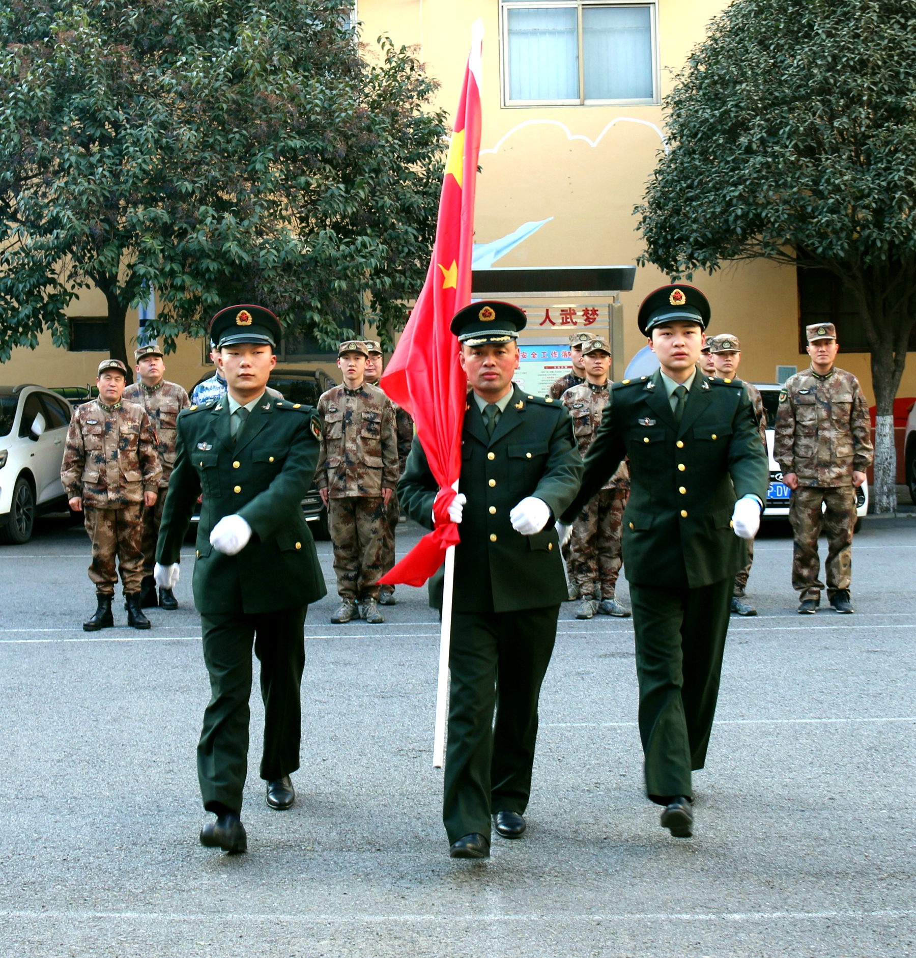 為激發(fā)官兵扎根基層、愛國奉獻(xiàn)和牢記強(qiáng)軍目標(biāo)、獻(xiàn)身武裝工作實(shí)踐的政治熱情,該部決定在春節(jié)舉行升國旗儀式?!吧龂?,既是一次儀式教育,更是一次愛國主義教育,凝聚了官兵愛國情、報(bào)國志。激勵大家時(shí)刻牢記習(xí)主席建軍指示要求,以時(shí)不我待的精神投入到實(shí)戰(zhàn)化練兵備戰(zhàn),扛起當(dāng)代國防動員的使命擔(dān)當(dāng)?!痹摬空罘迦绱苏f。