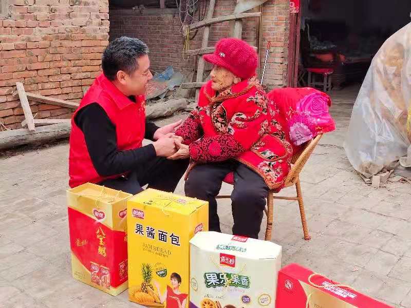按照中國民間傳統(tǒng)習(xí)俗,新春伊始,人們都要穿戴新衣新帽走親訪友,拜年送祝福。2月12日,農(nóng)歷正月初一一大早,遜母口鎮(zhèn)心連心雷鋒服務(wù)隊(duì)隊(duì)長張新靜帶領(lǐng)志愿者張建設(shè)、劉賀敬、馮茹愿、賈衛(wèi)蒙、馮柯馨、歐樣等人就敲開了106歲的張占花家門。當(dāng)日,他們帶著核桃牛奶、面包、八寶粥,專門來為老人來拜年。 “新靜他們來了……”一聽聲音,張占花老人就猜到了是誰。經(jīng)過去年一年的幫扶,張新靜等人已經(jīng)與照顧占花老人成了“熟人”?!斑@些孩子們可沒少幫俺,又送物又幫俺打掃庭院”??吹街驹刚邆兊牡絹?,張占花老人的臉上掛滿笑容。