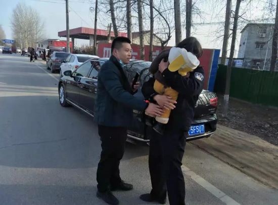 見到報(bào)警人時(shí),民警發(fā)現(xiàn)小女孩還在不停的哭泣,已為人父的顧一諾趕緊將小女孩抱入懷中,輕輕擦拭女孩臉上的淚水,不停的安慰。簡單的向報(bào)警人了解情況后,顧一諾抱著小女孩開始在附近商鋪為其尋找家人,或許是因?yàn)轭櫼恢Z特別會(huì)哄小孩,在找尋途中,小女孩竟然趴在顧一諾的肩膀上睡著了,擔(dān)心孩子著涼,顧一諾和同事決定先將小女孩抱回派出所。