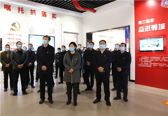 2月18日,新年上班第一天,市人大常委會副主任、鄲城縣委書記羅文閣,縣委副書記、縣長李全林帶領縣四個班子領導和部分縣直單位黨員干部,開展中共黨史學習教育活動,激勵全縣各級黨員干部不忘初心、牢記使命,在新時代不斷加強黨的建設,更加緊密地團結在以習近平同志為核心的黨中央周圍,始終保持永不懈怠的精神狀態(tài)和一往無前的奮斗姿態(tài),振奮精神,堅定信心,銳意進取,真抓實干,奮力譜寫全面建設社會主義現(xiàn)代化鄲城新篇章,以優(yōu)異成績迎接建黨100周年。