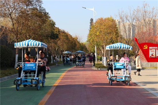 “今天真暖和。”2月19日,風(fēng)和日麗,周口國(guó)防教育園內(nèi)湖水蕩漾,四周的迎春花、梅花相繼開放,吸引了許多市民帶著孩子前往踏春賞花,接受國(guó)防教育。周口日?qǐng)?bào)·周道客戶端記者 高洪馳 攝