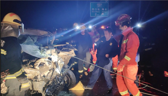 2月21日19時(shí)許,大廣高速周口段2064KM附近發(fā)生一起交通事故,大貨車沖破護(hù)欄與對(duì)向車道內(nèi)的兩輛私家車發(fā)生碰撞,司機(jī)和一名5歲女童被困車中。接到報(bào)警后,民警、消防、醫(yī)護(hù)人員迅速趕到現(xiàn)場(chǎng)開(kāi)展救援,20時(shí)39分兩人被救出并接受進(jìn)一步治療。