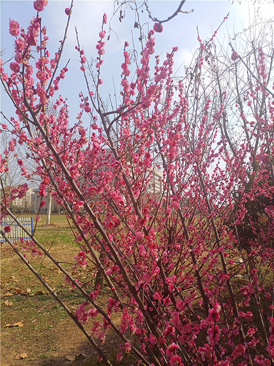 梅花,自古以來就是文人墨客筆下的???。有詩云:“春風(fēng)試手先梅蕊,頩姿冷艷明沙水?!泵坊軌蛄韬㈤_,兼具冷艷和嬌媚,被譽(yù)為花中四君子之首。近日,我市天氣晴好,公園內(nèi)、道路旁,一樹樹梅花開的熱熱鬧鬧、密密匝匝,令人感受到濃濃的春意和無盡的美好。