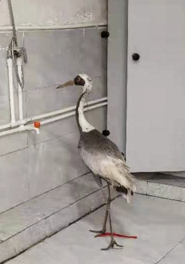 2月24日,鄲城縣吳臺鎮(zhèn)村民在田地里干活時,發(fā)現(xiàn)一只“大鳥”,身體虛弱的趴在地里不能飛行,村民看著這只大鳥一雙腿非常長,像是丹頂鶴,他不敢怠慢,立刻撥打救助電話,鄲城縣自然資源局接到救助電話后,局長楊玉民、分管副局長李北斗高度重視,立即指派鄲城縣森林公安局及野生動植物保護和自然保護地管理股工作人員前往救助。經(jīng)周口市野生動物救助中心工作人員現(xiàn)場觀察初步鑒定后認為,這是一只白枕鶴,屬于國家一級保護珍禽。據(jù)百度了解:白枕鶴(學(xué)名:Grus vipio)體形與丹頂鶴相似,略小于丹頂鶴,而大于白頭鶴。上體為石板灰色。尾羽為暗灰色,末端具有寬闊的黑色橫斑。世界白枕鶴數(shù)量稀少,種群僅存不足5000只,白枕鶴棲息于開闊的平原蘆葦沼澤和水草沼澤地帶,也棲息于開闊的河流及湖泊岸邊,以及鄰近的沼澤草地,有時出現(xiàn)于農(nóng)田和海灣地區(qū),尤其是遷徙季節(jié)。村民發(fā)現(xiàn)的這只白枕鶴可能就是在遷徙過程中受傷才從空中掉落。