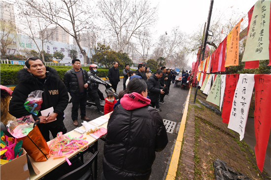 他說,讓他難忘的是十多年前,在七一路市委門前的元宵節(jié)燈謎會上,人山人海,大家搶著猜謎。當很多人圍著搶猜時,他不搭話,搶先拽下謎條,一張兩張……,攥在手里,在一片驚訝、贊賞的目光中去兌謎底,作為一個農(nóng)民,和滿腹才學的知識分子一較高下,那是最開心的時刻。他外出打工,也是哪里有燈謎,他就設(shè)法趕去。他說,浙江一帶猜謎活動非常多,大人小孩都喜歡。謎語文化是傳統(tǒng)的東西,不能丟。他此次趕來周口猜燈謎是從周口日報、周口晚報的微信和周道發(fā)布的消息上知道,一大早搭公交車趕到市區(qū),由于不知道華威民俗文化博物苑在哪?便一路打開手機導航趕到現(xiàn)場。