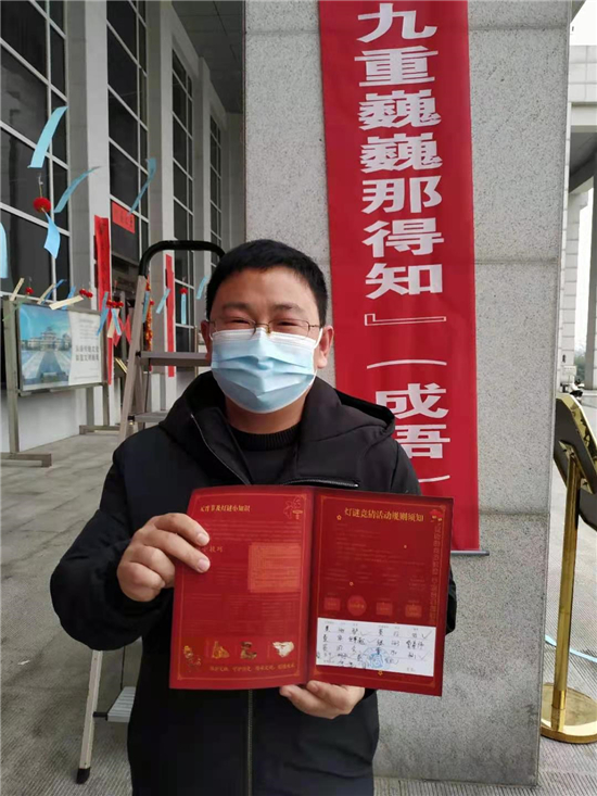 下午首開的一條一等獎燈謎是“九重巍巍那得知(打一成語)”,大家競猜中,安先生帶著家人搶先猜中謎底,高喊為“天子門生”。因謎意難度大,羅營東現場釋難,解釋謎面,他說“九重巍巍"指的是“天宮的意思,這里指皇宮門庭威嚴,乃禁地之所,不可逾越”,“那得知”是“生”的意思,所以謎底為“天子門生”。大家頓足不輟,自悔沒有想到位。在第三條一等獎謎語“甲子(打一個中央電視臺節(jié)目)”揭開,“第一時間”,竟有四人同時舉手猜中,誰是最終的勝者,評判人員讓他們現場各自陳述謎面,以準確程度定輸贏,羅營東現場解說‘“甲子”是我國古老的紀年文化,甲在天干紀年法中排第一位,子在地支紀年法中也是排第一位,是中央電視的“第一時間”謎面的謎底。最終,來自華耀城辦事處朱莊村的殷有軍解說的謎底與專家的相符成為勝者。