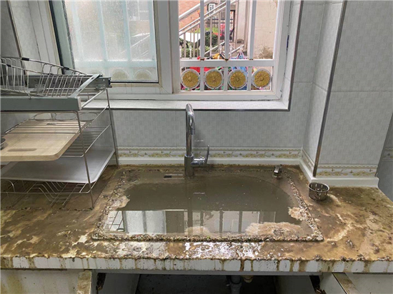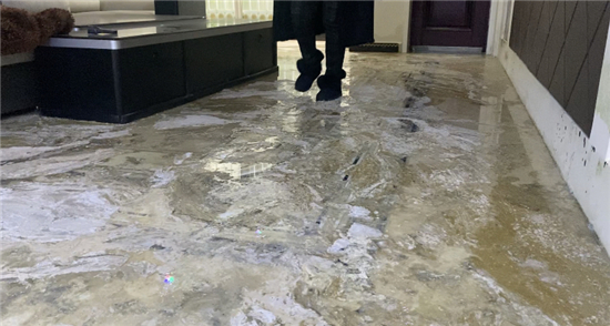 看著精心裝修的房子,被下水道的污水浸泡了每個(gè)角落,新買的家具被泡,墻體被污水肆意的畫成“涂鴉”。看到尚未入住的新房這般“慘烈”模樣,石女士氣不打一處來?!罢l能想到下水道里的污水能從洗碗池里溢出來啊,污水隨著地板的縫隙滲入了地板下面,前3次出現(xiàn)這種情況后,屋里已經(jīng)不成樣子,為了孩子結(jié)婚,這又重新裝修了一邊,家具也是剛換的,又被污水浸泡了,這都是第4次了,每次的損失都是我自己承擔(dān)的?!笔繗鈶嵉卣f。