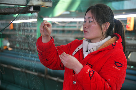 “不用外出打工,一天掙錢100多塊,這小漁網(wǎng)幫俺編織起小康夢(mèng)!”3月4日上午,在商水縣練集鎮(zhèn)中楊莊村,正在村頭匯樂(lè)生態(tài)漁網(wǎng)公司生產(chǎn)車間察看機(jī)器生產(chǎn)網(wǎng)布的村民王英笑哈哈地說(shuō)。