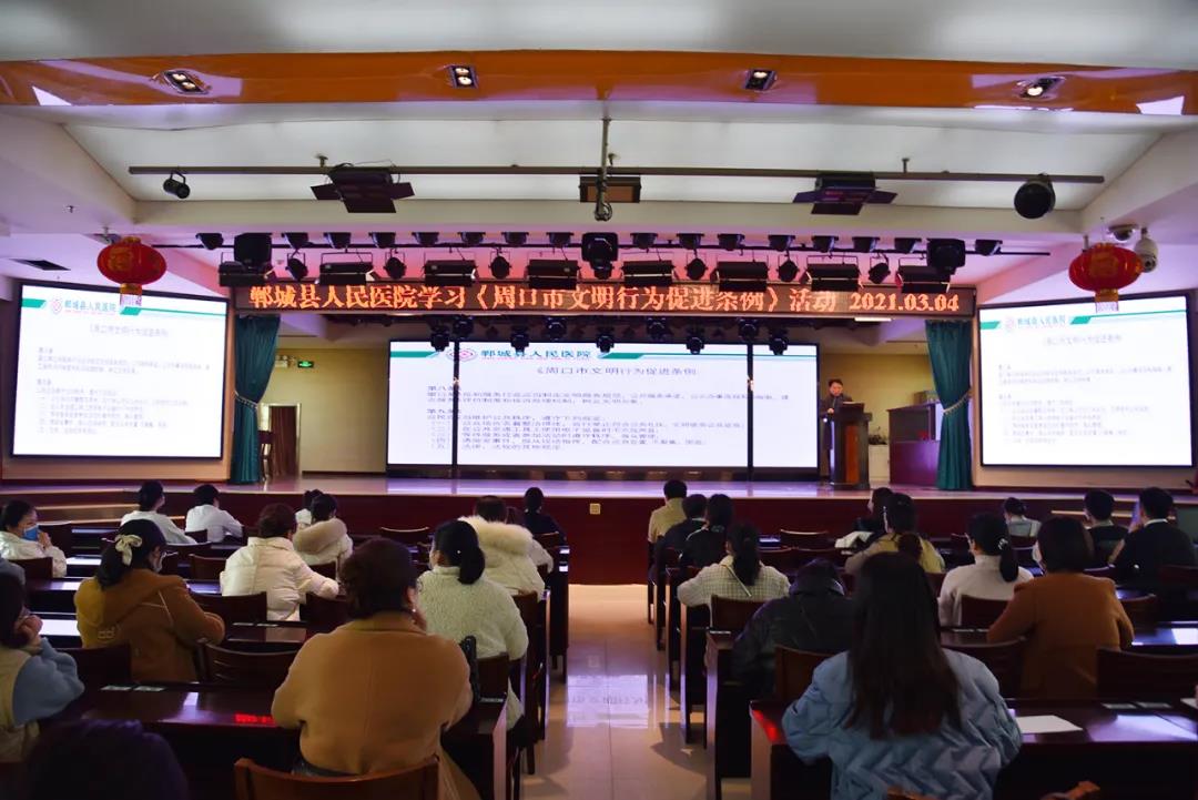 近日,鄲城縣人民醫(yī)院按照縣文明辦的要求,在全院范圍內(nèi)深入開展學(xué)習(xí)《周口市文明行為促進(jìn)條例》活動(dòng)。宣教科長孫小明結(jié)合醫(yī)院工作實(shí)際,對照《周口市文明行為促進(jìn)條例》五章42條逐章逐條進(jìn)行詳細(xì)解讀,重點(diǎn)強(qiáng)調(diào)了文明交通、文明旅游、文明餐桌、文明上網(wǎng)及窗口服務(wù)的部分條款。