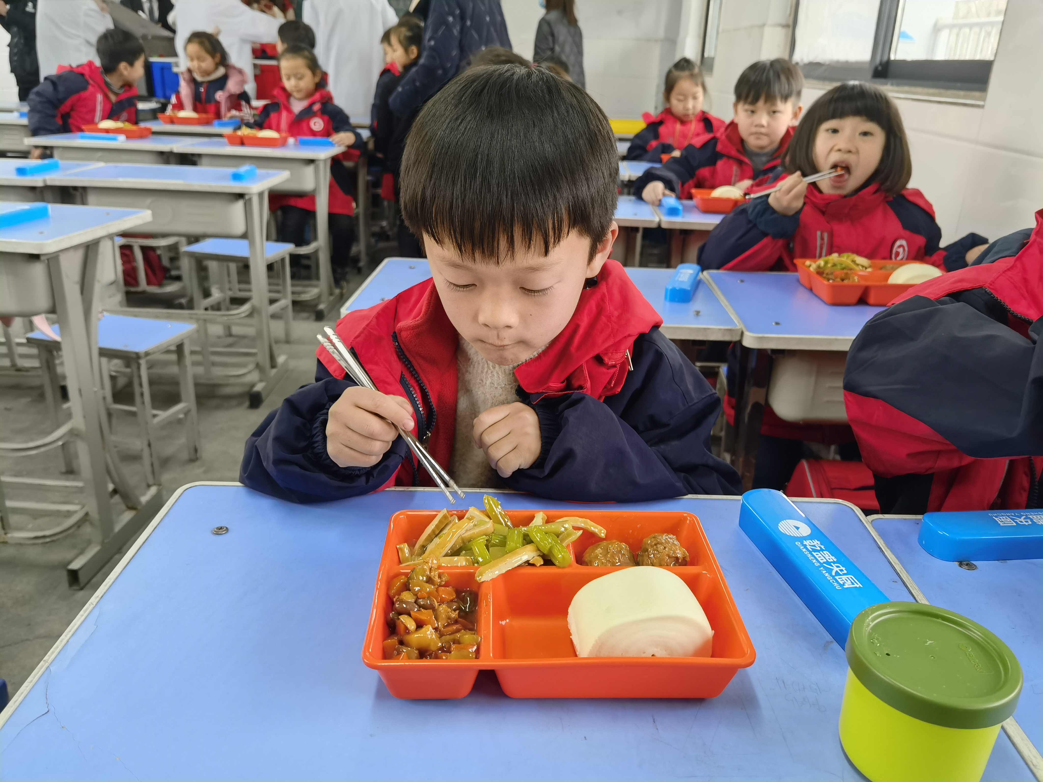 七一路二小校長(zhǎng)邵在斌說:“中午配餐和延時(shí)服務(wù)是市委、市政府實(shí)實(shí)在在的惠民工程。為了做好這項(xiàng)工作,我們前期去鄭州參觀學(xué)習(xí),回來(lái)按照文件精神去做。中午配餐解決很多問題,一是家長(zhǎng)接學(xué)生難,輔導(dǎo)作業(yè)難的問題,我們中午配有語(yǔ)文老師,晚上配有數(shù)學(xué)老師給學(xué)生輔導(dǎo)作業(yè)。二是延緩了學(xué)校周邊交通壓力。三是能保證學(xué)生休息時(shí)間,為了配合延時(shí)服務(wù),我們的上課時(shí)間從8點(diǎn)調(diào)整到8點(diǎn)30分,但開門時(shí)間還是7點(diǎn)20分,方便上班早的家長(zhǎng)送學(xué)生。本次送餐1200多份,每班用餐時(shí)兩名教師在崗,吃完飯后留一名老師輔導(dǎo)學(xué)生。今天我們?nèi)珕T監(jiān)督配餐,領(lǐng)導(dǎo)全部在崗,校長(zhǎng)分包樓,中層領(lǐng)導(dǎo)分包層,責(zé)任到人,保證每個(gè)孩子用餐安全,讓每位家長(zhǎng)都安心?!雹?