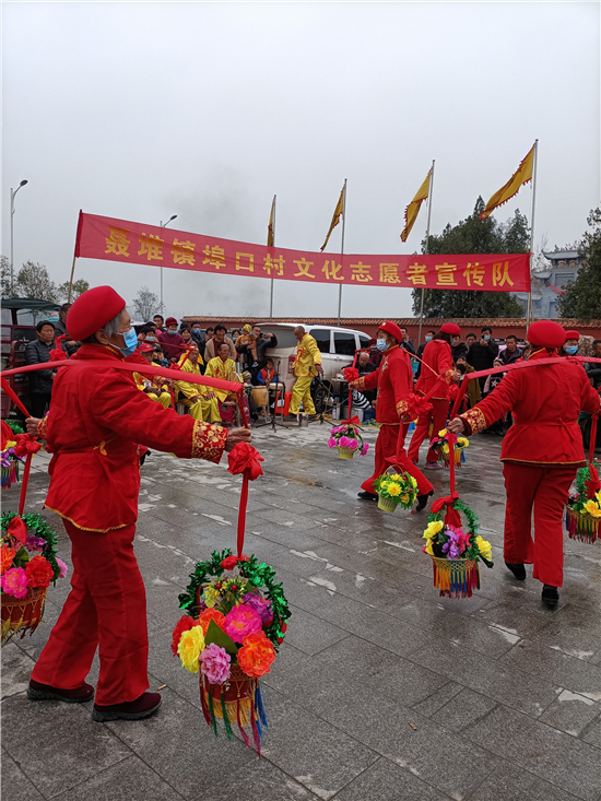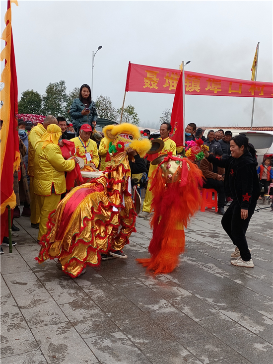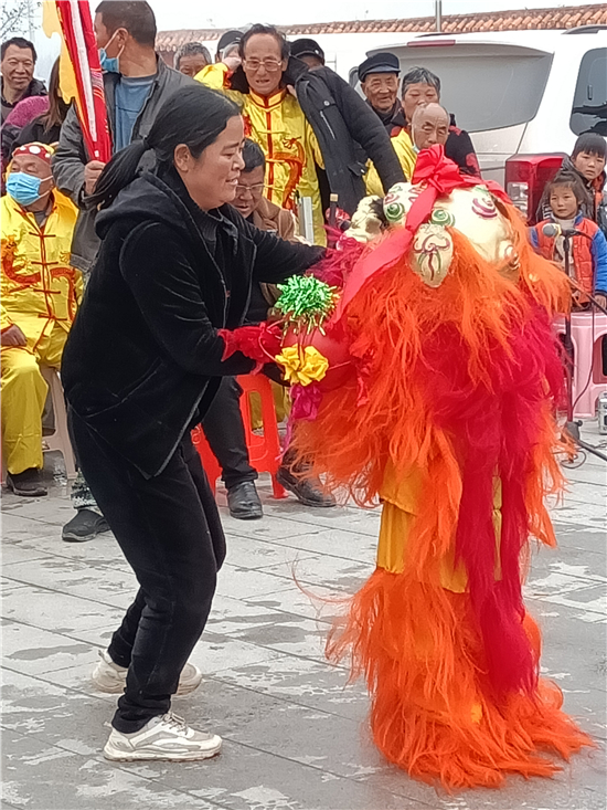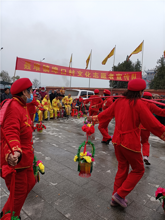 二月二,龍?zhí)ь^。3月14日,西華縣女媧城門前的廣場上,寫著“聶堆鎮(zhèn)埠口村文化志愿者宣傳隊(duì)”的紅色條幅前吸引了眾多游人。這些志愿者們用群眾喜聞樂見的舞獅、戲曲等傳統(tǒng)文藝節(jié)目,自編自演脫貧攻堅(jiān)給村民們帶來的新變化,宣傳黨的富民政策,鼓勵(lì)大家參與到鄉(xiāng)村振興工作中。