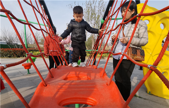 在周口公園內(nèi),園內(nèi)春意盎然,一株株垂柳隨風(fēng)搖擺,各種花開正盛,市民循著春天的腳步,品味草長(zhǎng)鶯飛的春色美景。游樂(lè)設(shè)施區(qū)內(nèi)孩子們盡情地玩耍,臉上洋溢著開心地笑容。
