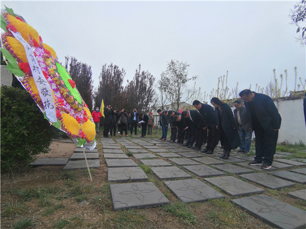 綠樹掩映,豫東特委紀念塔高高佇立,紀念碑前整齊地擺放著鮮花。300余名來自老區(qū)的黨員干部、師生代表等在烈士胡曉初墓前靜立默哀、三鞠躬,傾訴哀思,深切緬懷革命先烈的不朽功績。