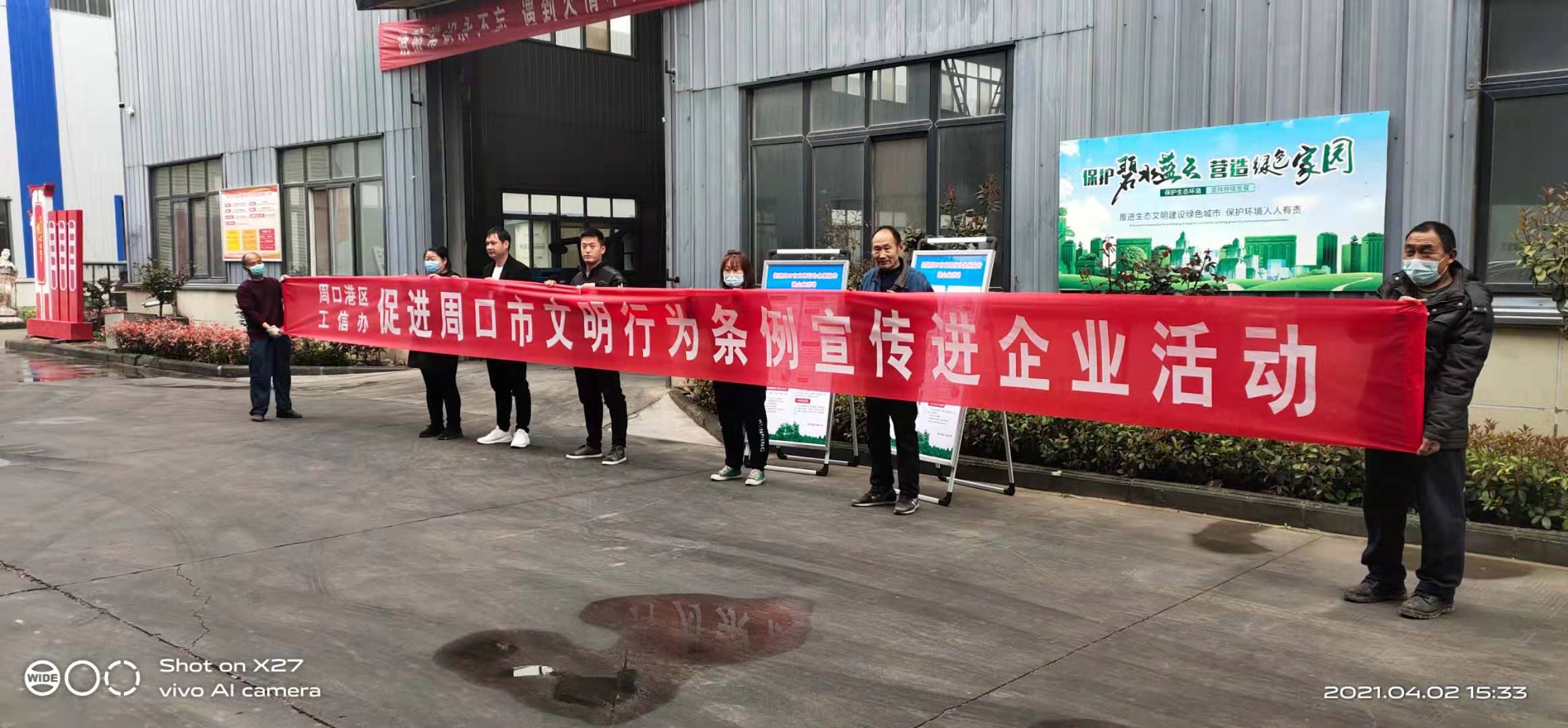 為迅速掀起學(xué)習(xí)宣傳《文明行為促進(jìn)條例》熱潮,不斷提升廣大企業(yè)員工文明法治意識、社會責(zé)任意識,運(yùn)用法律法規(guī)規(guī)范促進(jìn)文明行為,4月2日下午,周口港區(qū)工信辦組織人員開展宣傳《周口市文明行為促進(jìn)條例》進(jìn)企業(yè)的活動。
