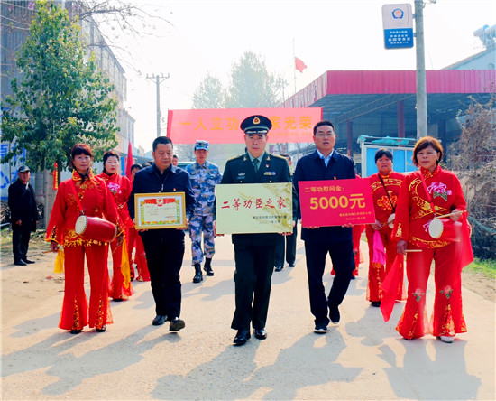 李峰說:“一張立功喜報,不僅是軍人榮譽(yù)的象征、成長進(jìn)步的見證,也承載著軍人家屬的期盼與慰藉。功臣是實(shí)現(xiàn)強(qiáng)軍興軍目標(biāo)的尖兵,他們在部隊建功立業(yè),我們力所能及服務(wù)保障好他們的家人,積極在全社會營造起‘功臣受愛戴、軍人受尊崇、軍屬受尊敬’的氛圍?!睘榇?,鹿邑縣人武部積極構(gòu)建軍人軍屬榮譽(yù)體系,每逢重大節(jié)日,都要協(xié)調(diào)地方黨委、政府開展為現(xiàn)役軍人和軍屬送喜報,掛功臣匾、光榮牌等活動,通過活動激勵等形式,讓軍人軍屬享有更多的“專屬榮光”,努力營造“一人參軍,全家光榮;一人立功,全村光榮”的濃厚氛圍,更加堅定了軍屬支持子女獻(xiàn)身國防的決心,進(jìn)一步激發(fā)了鹿邑籍官兵獻(xiàn)身軍營、報效祖國的積極性。②9