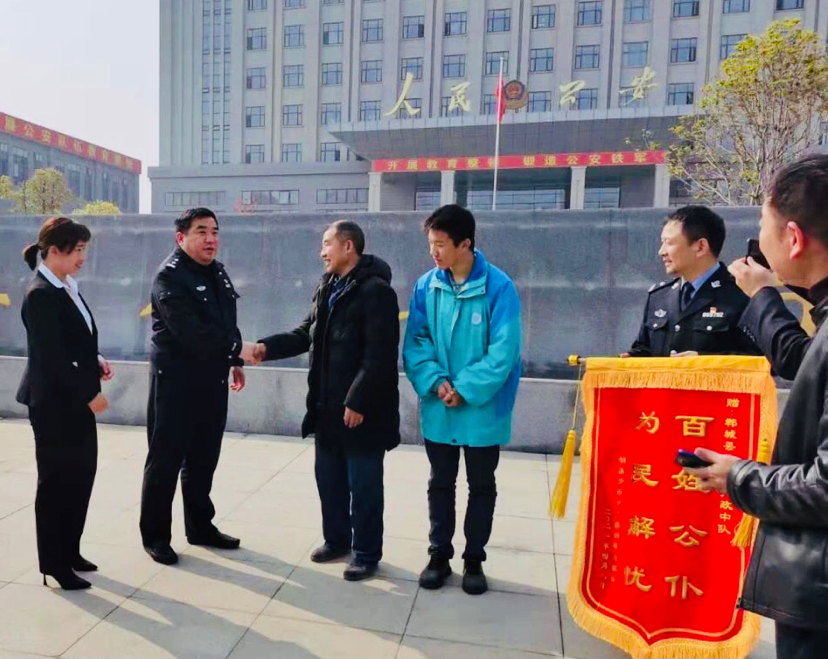 “感謝你們心系百姓,為民解憂?!?月8日,中學(xué)生胡某和其爺爺、班主任一起來到鄲城縣公安局,將一面寫有“百姓公仆,為民解憂”的錦旗送到民警手中,感謝連連。