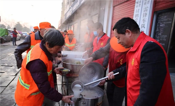 “謝謝黨和政府、工會(huì)組織對(duì)我們的關(guān)懷?!表?xiàng)城市文明路愛心粥屋前,環(huán)衛(wèi)工閆愛云端著剛剛盛好的暖心粥開心地說(shuō)。