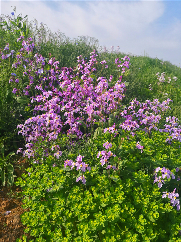 近日,天氣漸暖,市中心城區(qū)不少地方種植的諸葛菜花相繼綻放,尤其是沙潁河兩岸大片的諸葛菜花宛如一片紫色的花海,分外迷人。蜜蜂、蝴蝶在紫色花海叢中徜徉飛舞,此番趣景也吸引了不少群眾駐足觀賞。