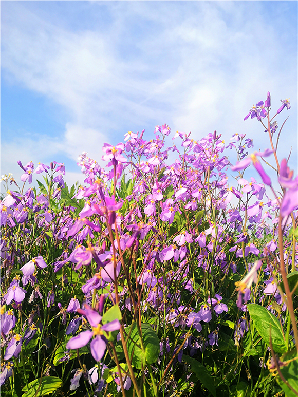 據(jù)了解,諸葛菜也叫二月蘭,因早春農(nóng)歷二月前后開花,所以叫二月蘭,花開溫柔,娟秀,清雅,很是招人喜歡。而且具有較強(qiáng)的耐寒性與適應(yīng)性,自繁能力比較強(qiáng),一次播種能年年自成群落,能夠有效控制裸地?fù)P塵起沙、抑制雜草生長。諸葛菜花花期相當(dāng)長,能夠從早春時(shí)節(jié),一直開到暮春初夏間,當(dāng)百花盛開時(shí),它依然露著笑臉。因此著實(shí)是春天里的“早到遲退”之花。③5