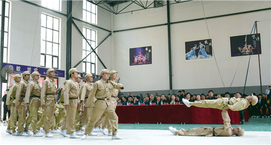 4月12日下午,項(xiàng)城市雜技藝術(shù)學(xué)校通過運(yùn)用雜技藝術(shù)編創(chuàng)的紅色雜技劇,在該校首次面向社會(huì)展演,以慶祝建黨100周年。同學(xué)們穿著解放軍服裝,模擬渡江、登城、翻越城墻、槍林彈雨戰(zhàn)斗等場(chǎng)景,演繹了一場(chǎng)紅色文化教育的情景劇,讓人耳目一新,受到大家一致好評(píng)。周口日?qǐng)?bào)·周道客戶端記者 梁照曾 攝