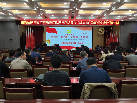 4月13日晚7:00至8:30,項(xiàng)城市教育體育局黨史夜校學(xué)習(xí)班第一期在該局會(huì)議室正式開班。來自項(xiàng)城市教體局、文廣新局、民政局、信訪局的近200名黨員參加了此次培訓(xùn)。
